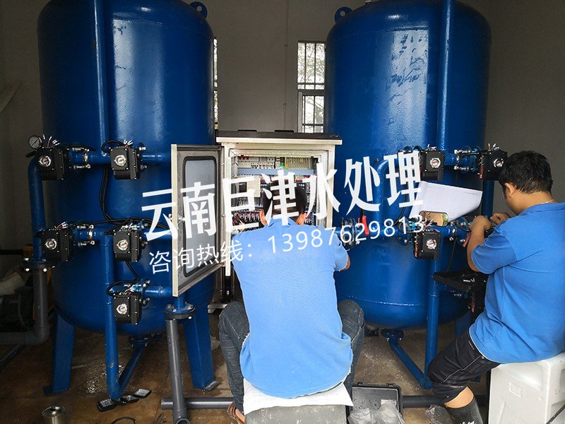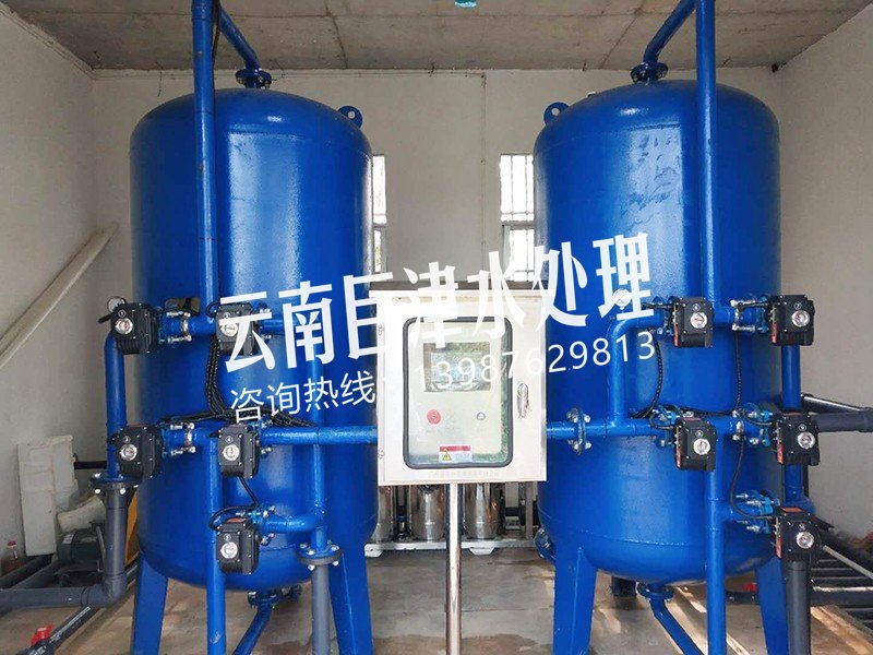 项目名称:云南平河镇河水净化设备工程 设备名称:20吨压力式净水设备 工艺流程:河水-加药设备-原水泵-石英砂过滤器...