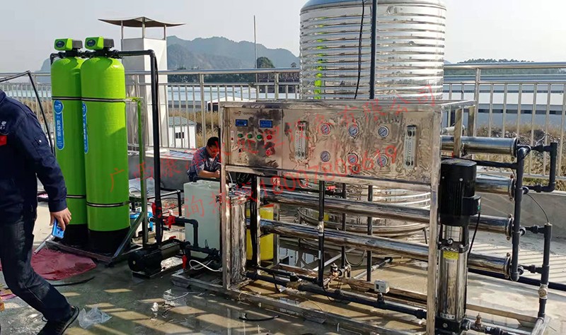 工艺流程:原水箱-原水泵-石英砂过滤器-活性炭过滤器-精密过滤器-反渗透设备-净水箱